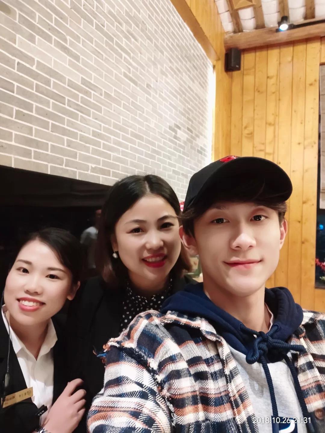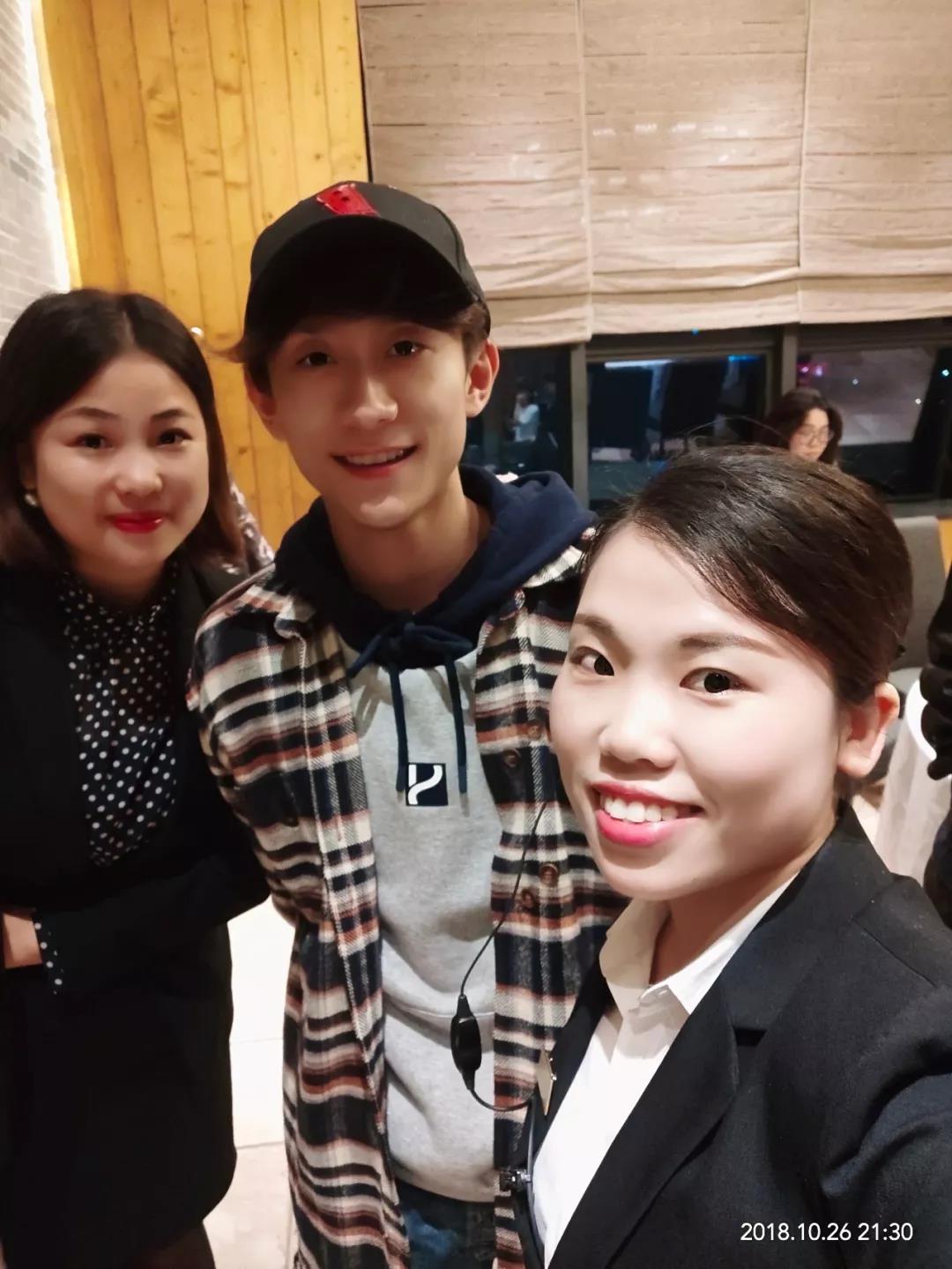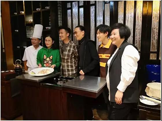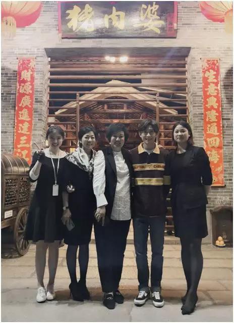 张一山与猪肉婆私房菜创始人吴素芬女士(右三)团队合影留念